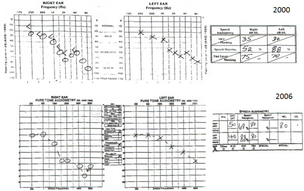 Figure 13. BR at 83 years of age, with progression in hearing loss and decrease in word recognition scores, bilaterally.