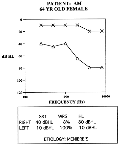 Figure 1. Asymmetrical hearing loss due to Meniere’s disease in a 64-year old patient.