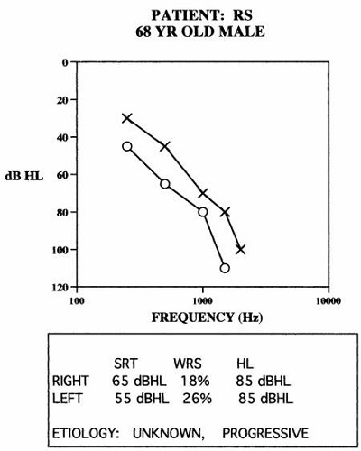 Figure 3. Asymmetrical, progressive hearing loss in a 68-year old patient.