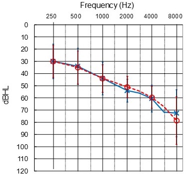 Figure 1. Average audiogram of study participants.