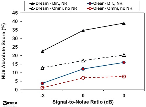 Figure 2. Comparison of Clear and Dream hearing aids with directional microphone and noise reduction options.