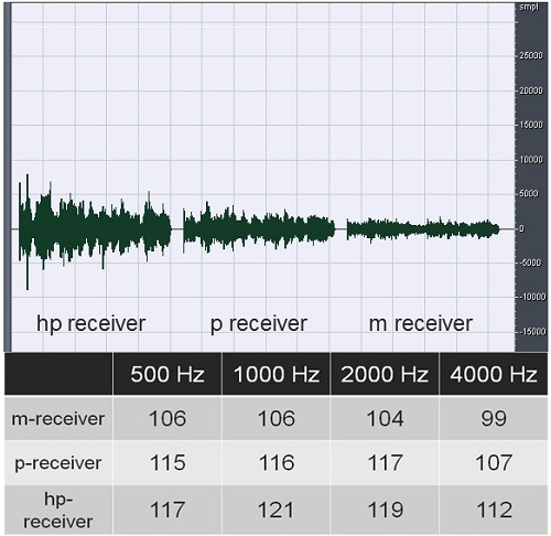 Figure 3. MPO of three different-power receivers from 500 to 4000 Hz.