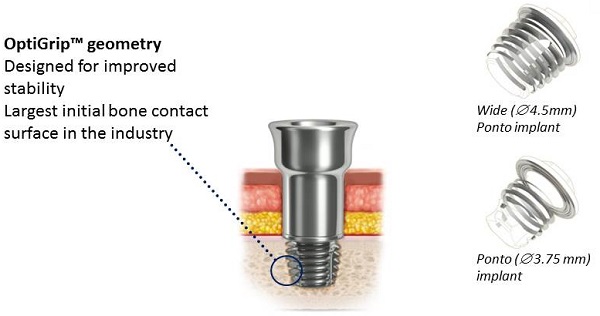 Figure 11. OptiGrip implant and comparison of wide and standard Ponto implants.