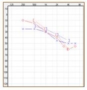 Figure 2. Audiogram of a patient with skin allergies in the ear canal who could not use traditional air conduction hearing aids.