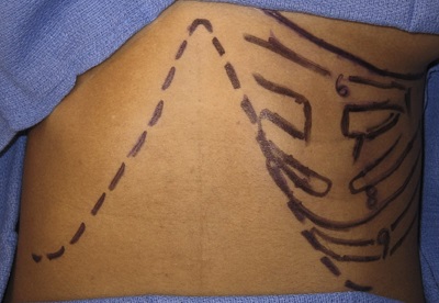 Figure 9. Preoperative drawing of the rib cage and ribs from which cartilage will be harvested.