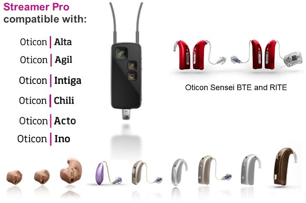Figure 5. Oticon hearing aids that are compatible with Oticon Streamer Pro. (Oticon Safari not shown.)