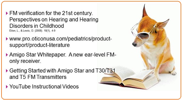 Humitz, M. (2014, December). There's a new Star in school: making FM work for children with listening difficulties. AudiologyOnline, Article 13084 Retrieved from: http://www.audiologyonline.com