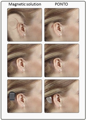 There is no evidence of an implanted magnet when you take the device off. You will sleep like royalty when you have removed a magnetic device. Patients should know to do an apple-to-apple comparison. Compare the cosmetic outcome when the sound processor is in use. In this case, you can see in Figure 6 that the Ponto device has the lowest physical profile.