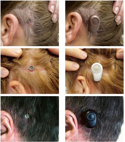 As we then moved on in time, other manufacturers have look to create transcutaneous or non-skin penetrating systems where an external vibrator is held in place by both an external magnet and an implanted magnet. The results of such devices are quite similar to what we had already accomplished in the past with headband and softband solutions.