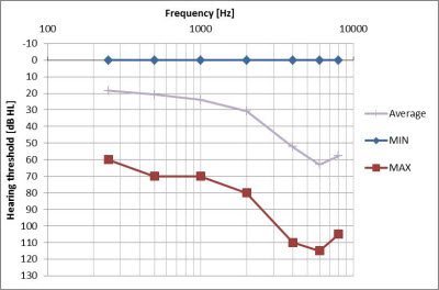 Figure 1. Audiometric range for the participants in the trial (averaged across the left and right ears).