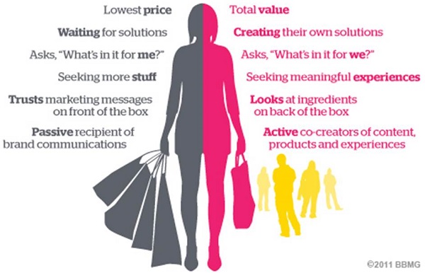 Figure 1. Comparison of the old consumer (left, gray) and the new consumer (right, pink).