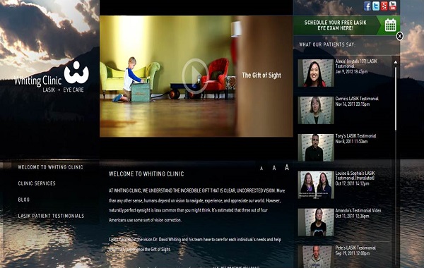 Figure 4 shows a website from the Lasik Eye Care world. The Gift of Sight video on their site is about 90 seconds. That is an important component to your website. You will notice there is a blog, which is another important component of a captivating website. It has connections to Facebook, Twitter, and YouTube at the top. Also notice the video testimonials on the right sidebar.