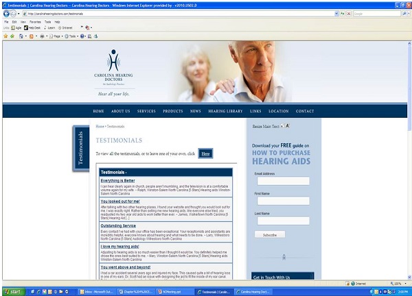 Figure 5. Website featuring testimonials.