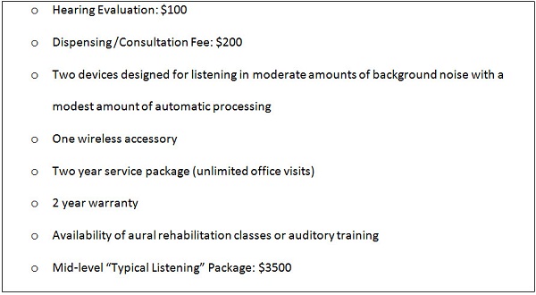 As a general rule, practitioners in the hearing aid industry have traditionally bundled their offerings to consumers. This means that several features and services are combined (or bundled) and offered to patients at a single price point. For example, the practitioner might bundle the hearing evaluation, hearing aid fitting fee, hearing aid and warranty into one single unit price. The chief advantage of bundling is simplicity. Because patients are given a single price with several benefits wrapped into one flat fee, it is believed that customers are more apt to make a purchasing decision (Tjan, 2010).