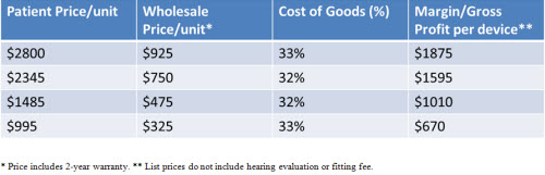 First, because they are a relatively small number of buyers for hearing aid services compared to other products, practitioners must maintain relatively high margins in order to make a profit and stay in business. Brady (2010) uses a concept called the “Rule of Thirds” to calculate the cost-of-goods (COG) and gross profit needed to cover expenses and make a before-tax profit. Using Brady’s rule, the cost-of-goods needs to be around 30% to 35% of the retail cost of the offering to each patient. Maintaining this COG range requires practitioners to be strong negotiators with their vendor partners and to thoroughly evaluate the retail price charged to patients.