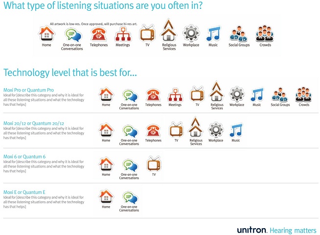 Figure 5. Customer attributes (designated by listening situations) and the corresponding levels of technology best suited for the patient.