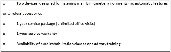 The use of coupons, club memberships and subscriptions are examples of differential pricing tactics (Mohammed, 2010). Differential pricing can be used to bridge the gaps between itemized bundles, discussed previously, and accessories that might be needed by a particular patient. For example, a practice could create an à la carte menu of items such as assistive devices, wireless accessories and sundry items that are offered to patients. If an individual decided to purchase the “Quiet Listening” bundle but really needed an assistive device for television viewing, they could be guided to purchasing something off the à la carte menu. Differential pricing tactics can also be employed for capturing business from the public assistance market. Depending on the funding source, practices can use differential pricing tactics to create incentives to this government-regulated segment of the market by offering very basic digital technology - not offered in any of the itemized bundles - at a low price point.