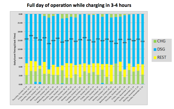 The next graph (Figure 13) shows the activity of a participant who needed to move from the 28 to the 32 mAh cell. The black line shows that with the 28 mAh cell, he was having a hard time getting through a full day. After we upgraded him into a 32 mAh cell, he had no problems getting through a full day, and rarely does he ever plateau. This is the 52-year-old man we mentioned earlier who commented, "My quality of life has improved."