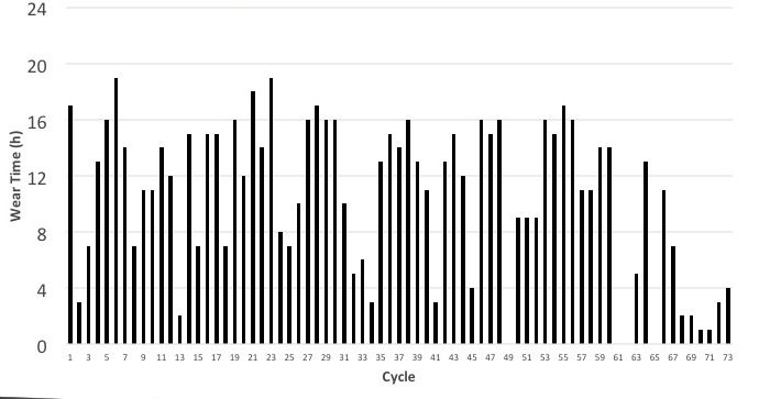 Figure 11. Wear times of erratic user/streamer, using Beltone Legend hearing aid.