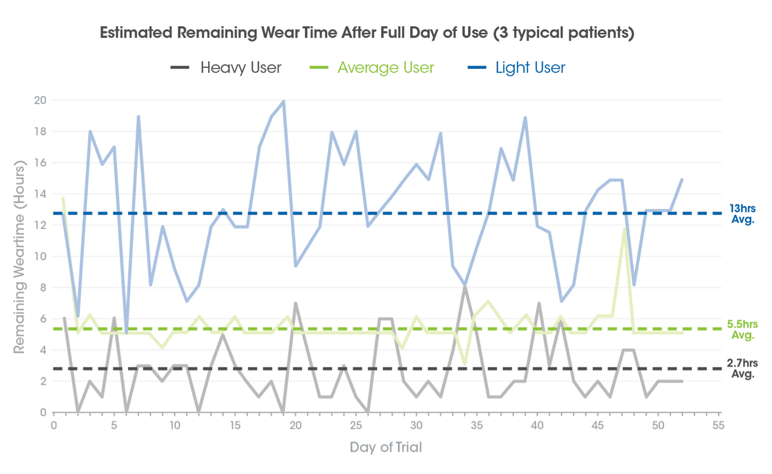 Figure 12. Estimated remaining wear time after full day of use (3 typical patients).