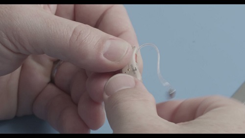 Let's watch how easy it is to make a hearing aid rechargeable. In this example, the hearing aid is a Siemens Pure.