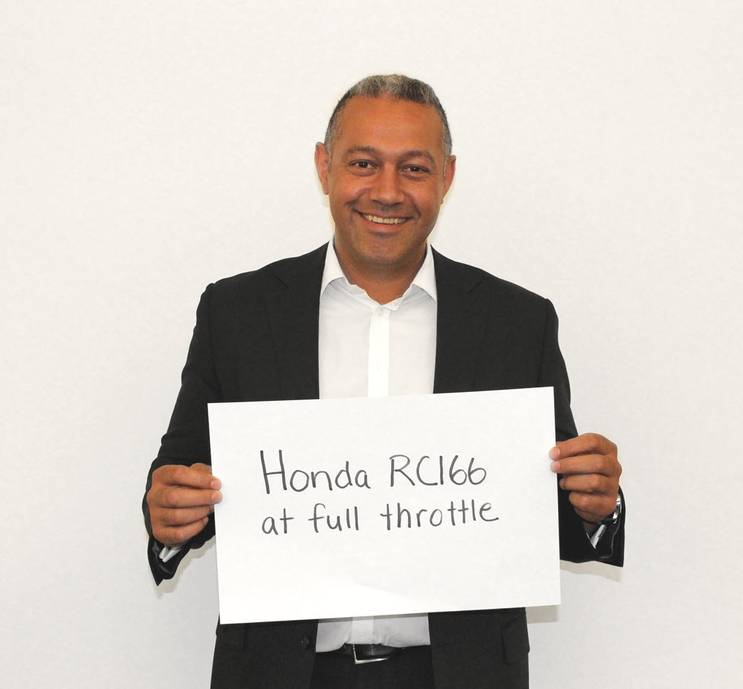 Jason Mayer and his favorite sound - his Honda RC166 at full throttle.