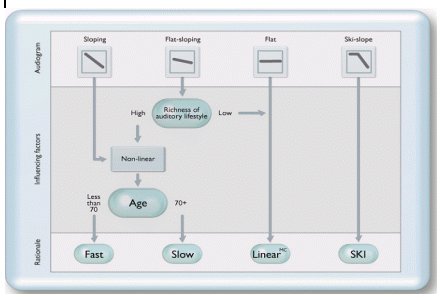 Adapto and the Genie fitting system allow us to truly engage the patient as an active partner in the fitting process. We all know there are factors beyond the audiogram that affect the signal processing needs of one patient versus another. Therefore, the Adapto fitting system requires that the patient provide "input" to the fitting process. Their input is incorporated directly into the configuration of the device. Based, in part, on recent findings by Gatehouse (2000), the Genie software evaluates all input information and recommends one of four proprietary fitting rationales (see Fig. 4) along with specific device settings. Table 1 provides a description of the four rationales.