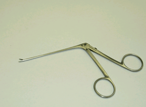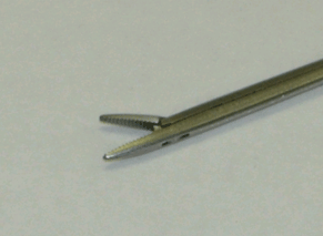 Alligator forceps resemble a pair of scissors (Figure 4a). Unlike the wide range in which standard scissor blades may be extended, the blades of the Alligator forceps offer a smaller range of extension, opening and closing only at the very tip of the forceps (Figure 4b).