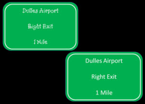Figure 3. Examples of the same road sign in a fancy, stylized font (upper left) and a standard font (bottom right).