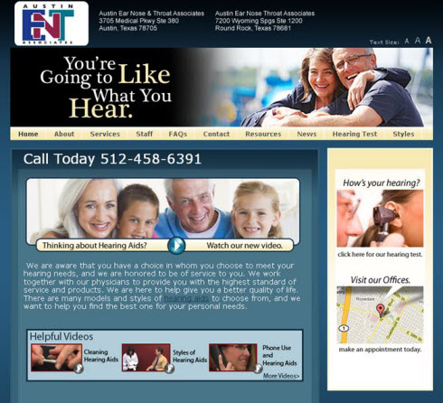 Figure 6. Austin Ear Nose & Throat Associates Home page (www.austinaudiology.com/our-services) powered by AudiologyOnline.