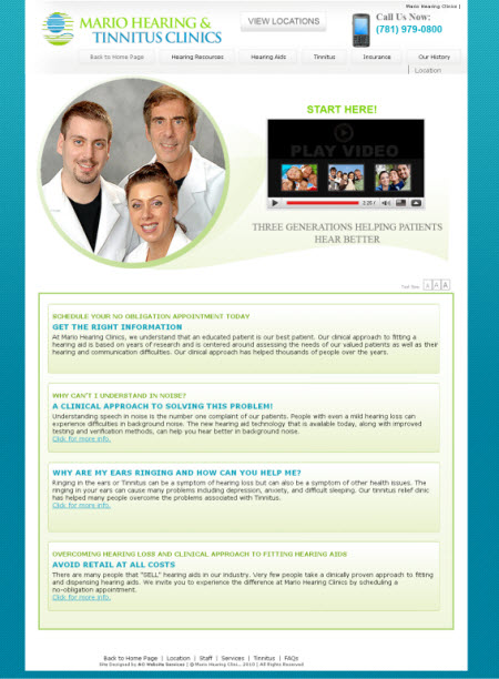 Another thing we have done to try to engage and educate people using these same credibility guidelines is to include helpful videos. We have actually recorded a library of videos from hearing aid batteries to degree of hearing loss to hearing aid styles, and then the patient can educate themselves on their own time, at their own pace. Again, we are not sending them off to YouTube; the player is integrated within your site to keep them there.