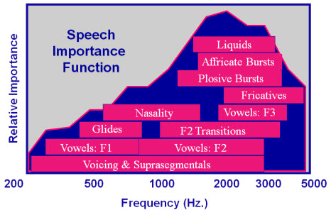 Figure 1. Speech importance across the frequency spectrum; note more relative importance in the higher-frequency regions.