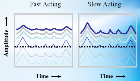 Slow-acting compression is considered slow because the release time of the compression is extended, for example maybe one second long. The idea of having a long release time is to make sure that the gain does not change from one phoneme to another. In other words, if there is a natural peak-to-peak difference between a loud vowel and a subsequent soft consonant, this loud vowel will cause a certain gain response to the hearing aid and so that loud vowel is going to be amplified up beyond that level. When that soft consonant comes through, the gain that is applied to the loud vowel is also applied to the soft consonant. What you are trying to do is maintain the peak-to-peak relationship between the vowel and consonant. There is a natural amount of information embedded in the vowel-to-consonant intensity difference. Long release times are used by some manufacturers in hearing aids specifically to preserve these phoneme-to-phoneme differences. Slow release times will make the long term differences between soft, moderate and loud speech reduced so that you can pack more of the long term average of speech within the patient's dynamic range, but it is done in such a way that the peak-to-peak differences between the phonemes are maintained at their natural level.