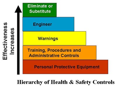 The hierarchy of health and safety controls should be predominant when considering noise controls. Can the noise hazard be eliminated by substituting a quieter process? Can the noise be 'fixed' through engineering controls? Only when all of the possibilities for elimination, substitution, and control have been exhausted should hearing protection, warnings, and training be considered as viable alternatives.