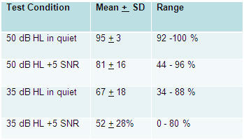 Table 1. Word recognition for 12 children with bilateral middle ear effusion and normal hearing. Adapted from Madell (1999).