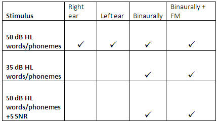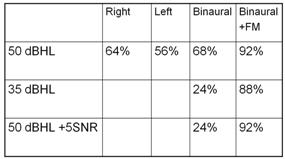 Table 9. Speech perception scores with hearing aids, and with hearing aids + FM.