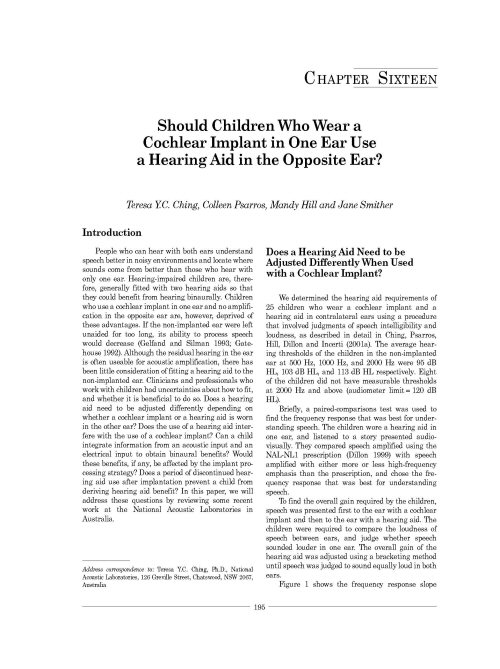 A Sound Foundation Through Early Amplification 2001 - Proceedings of the Second International Conference - Section V - Chapter 16 - Should Children Who Wear a Cochlear Implant in One Ear Use a Hearing Aid in the Opposite Ear?