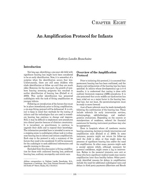 A Sound Foundation Through Early Amplification 2001 - Proceedings of the Second International Conference - Section III - Chapter 8 - An Amplification Protocol for Infants