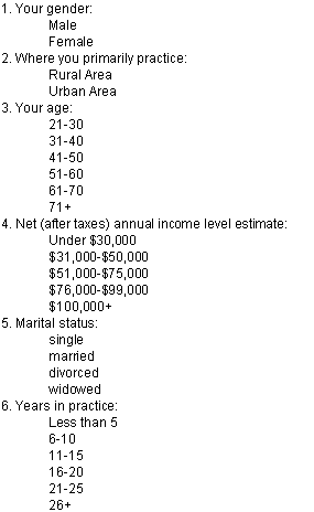 Table XVIII is a comparison between the present survey and one conducted five years earlier by Plumb (1998). It should be noted that Plumb presents average income in actual dollars while the present survey collected income by salary ranges. In the current survey, there is no meaningful difference in the range of median income among urban and rural practitioners.