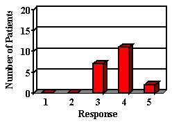 As of March 2002, 28 children with unilateral hearing loss had been fit with a hearing aid on their impaired ear. Although we had documented test performance in the soundbooth, it was now our goal to determine how they performed outside of the confines of the soundbooth. Since some of these children were fit prior to the implementation of our guidelines (including outcomes measures), a survey was created to determine if different aspects of their every day life had been affected by the fitting of a hearing aid (see Figure 1). The parent was asked to score how his or her child is doing in specific areas now vs. prior to receiving the hearing aid. Some of the questions were modified from questions on the CHILD (Anderson & Smaldino, 2000). Ultimately, we wanted to know: Does this hearing aid improve their quality of life?