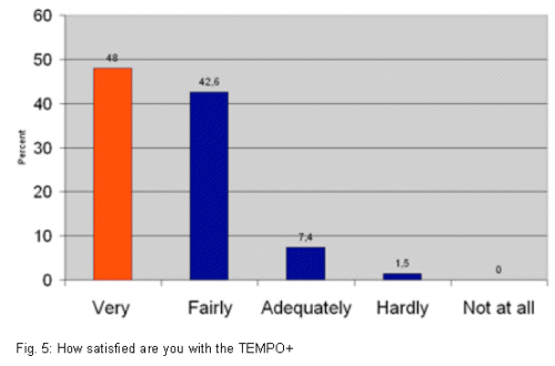 Finally, parents were asked about their overall satisfaction with the TEMPO+ (Fig 5). An overwhelming 48% reported being ''very satisfied'' with the TEMPO+ and 42.6% stating they were ''fairly satisfied''.