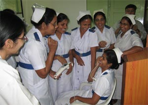 CITRON: We visited three government hospitals. One was Goa Medical College in Panaji;one was Asilo, located in a town called Mapusa;and the third was Hospicio, like the Portuguese word for hospital, in the town of Margao. Goa Medical College is an active medical school, and the largest of the three. There is an audiologist at Goa Medical College, as well as ABR equipment so we knew that there would be follow up. We worked with the audiologist while we were there. She will determine thresholds if necessary on babies who do not pass the screening and be responsible for further follow up. She is the only audiologist in the state of Goa for a population of 3 million.