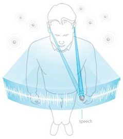 With Quantum Pro and Moxi Pro, if the speech that's being detected by the two hearing instruments is from within 45 degrees re: either side of your nose, then it determines, "That speech is coming from in front." It's in the target zone of the directional mics. The directional mics will then be very aggressive and cut out the environmental sounds from all other directions If you listen to our demo, you'll notice that when SpeechZone comes on the speech doesn't change, but the environmental noise just kind of disappears.