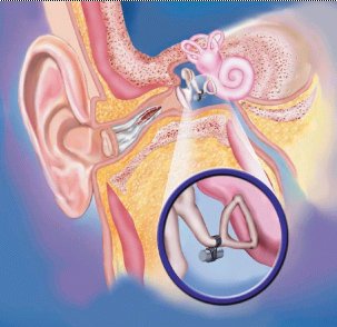 Hawkins: The SOUNDTEC middle ear implant is called 'The Direct System.' It is a very small, and very simple device. The implantable part is a hermetically sealed rare earth magnet, encased in titanium. It is attached to the head of the stapes at just about the incudo-stapedial joint and is held in place with a tiny ring. The size of the implant is about equivalent to one third the size of a grain of rice. The surgery takes about 30 minutes under local anesthesia. The external device is currently housed in a BTE type device with a deep 'ear mold.' The BTE unit is the processor, and the earmold section transmits the electro-magnetic signal to the implanted device. Importantly, the earmold doesn't have to fit tight -- as it would on a standard device. Again, because the signal leaving the earmold is electromagnetic, there is no acoustic feedback. So although we like the earmold to be as deep as possible, it's very comfortable because it doesn't have to hug the canal wall, and in fact it can be a loose, non-occluding fit, because there is no acoustic signal present, and therefore no feedback. See the illustration below for a little better idea of this technology.