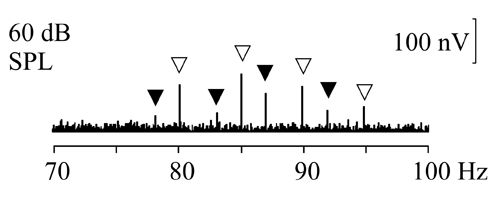 Picton: Sure. Most audiologists are familiar with transient evoked potentials like the ABR that are elicited by a click or a brief tone. You evaluate ABR waveforms using amplitudes and latencies. The ASSR uses a train of clicks or any regularly recurring rapid stimulus, such as an amplitude modulated tone, presented at steady rates near 40 or 80 per second. The ASSR is usually evaluated in the frequency spectrum. You measure the response at the exact rate of stimulus presentation. In other words, if you're presenting a stimulus at 80 per second, you detect the response at the 80-Hz point in the spectrum. Importantly, with ASSR you can present 4 stimuli per ear at a time (using different rates), and so the test can run quite rapidly.