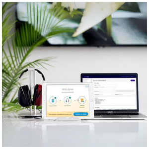 SHOEBOX® Consult is a software-based digital audiometer that allows hearing care professionals to perform advanced diagnostic testing outside of a sound booth. Small footprint in-clinic, extremely portable and has an optional tele-audiology feature.
