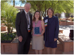 The final AFA presentation, made for the first time, was the Leo Doerfler Memorial Scholarship. Its recipient, Dr. Kristin Johnston, received her Au.D. in May from the University of Florida, and is currently enrolled in a Ph.D. program with an expected graduation date of 2008. The scholarship honors Dr. Doerfler's understanding and commitment to scientific endeavors in audiology.