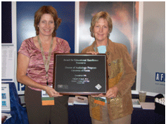 The AFA Award for Educational Excellence was presented this year to two schools - the Northeast Ohio Au.D. Consortium (NOAC) and the University of Florida. Dr. Sharon Lesner accepted the award for NOAC, and Drs. Mary Anne Pinner and Debra Shimon accepted the award for Florida.