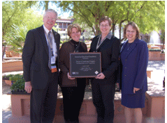 Sharon Sandridge, Ph.D., second from left, and Sharon Lesner, Ph.D., third from left, accept the "AFA Award for Educational Excellence" for NOAC from Ken Lowder, Au.D., left, AFA Chair, and Susan Paarlberg, right, AFA Executive Director.