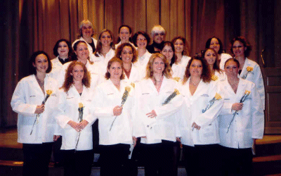 Students at the University of Pittsburgh who received coats during their first Audiology White Coat Ceremony. White coats were provided by the AFA.